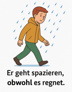 Ein Konzessivsatz ist ein Nebensatz, der einen Gegensatz, eine Einschränkung oder einen unerwarteten Umstand beschreibt. Er zeigt: Etwas passiert, obwohl ein anderer Grund eigentlich dagegen spricht.